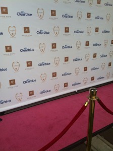 The gift bags for the event and the pink carpet.